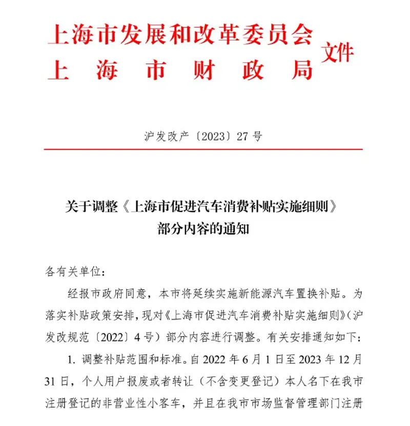 9月14日,,,,,,,上海市发改委宣布关于调解《上海市增进汽车消耗津贴实验细则》部分内容的通知。。。。。。。通知体现,,,,,,,经报市政府赞成,,,,,,,上海市将延续实验新能源汽车置换津贴,,,,,,,并对津贴实验细则的部分内容举行了调解。。。。。。。