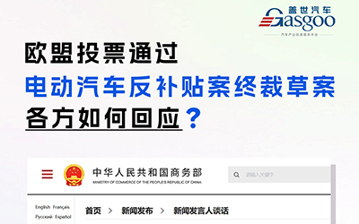 盖世汽车讯 10月4日,,,,,欧盟成员国代表投票通过了欧盟委员会提交的欧盟电动汽车反津贴案终裁草案,,,,,拟对原产于中国的电动汽车征收最终反津贴税。。。。。对此,,,,,中国商务部回应:中方坚决阻挡欧方对中国电动汽车加征反津贴税。。。。。中国商务部新闻讲话人体现,,,,,关于欧盟对华... 盖世汽车讯 10月4日,,,,,欧盟成员国代表投票通过了欧盟委员会提交的欧盟电动汽车反津贴案终裁草案,,,,,拟对原产于中国的电动汽车征收最终反津贴税。。。。。对此,,,,,中国商务部回应:中方坚决阻挡欧方对中国电动汽车加征反津贴税。。。。。中国商务部新闻讲话人体现,,,,,关于欧盟对华...